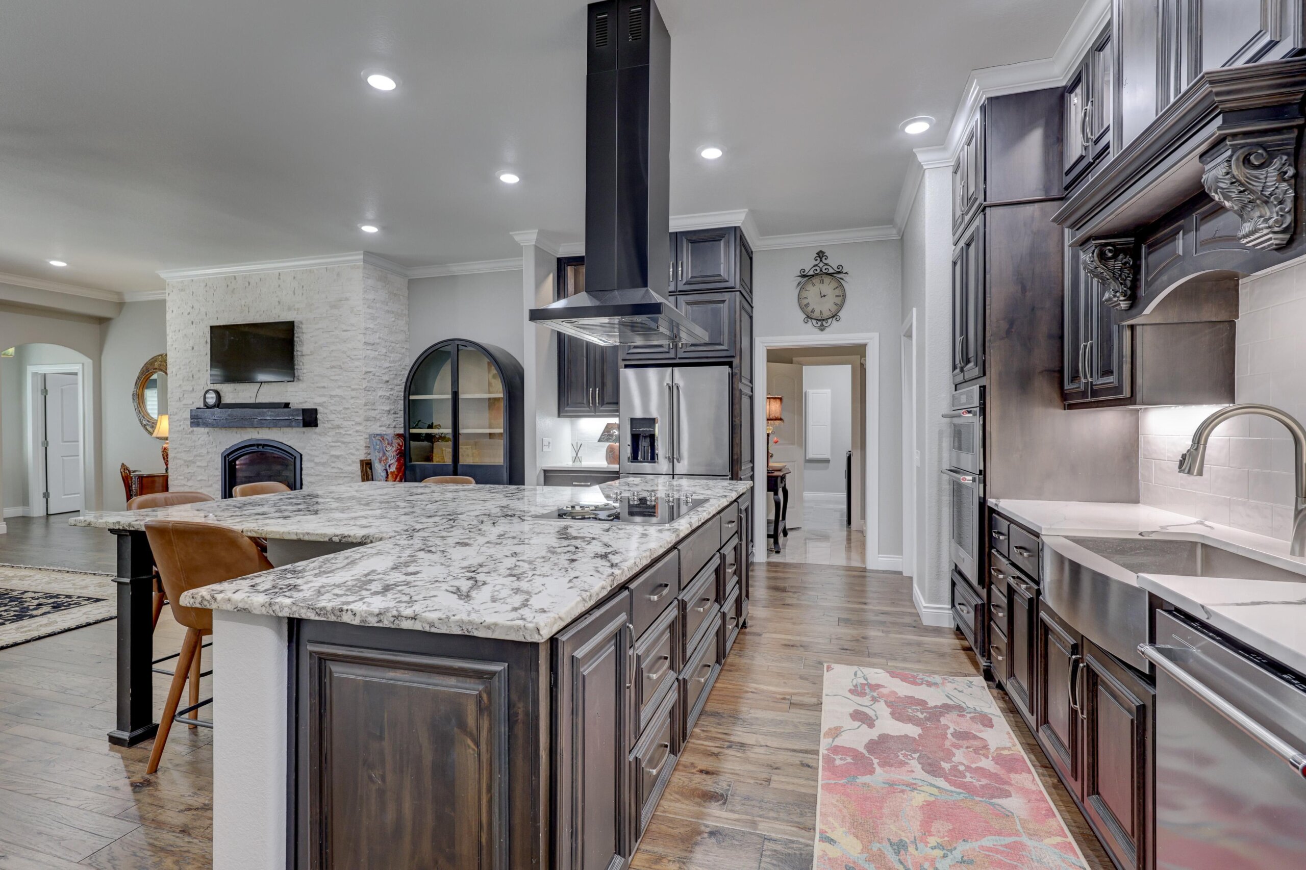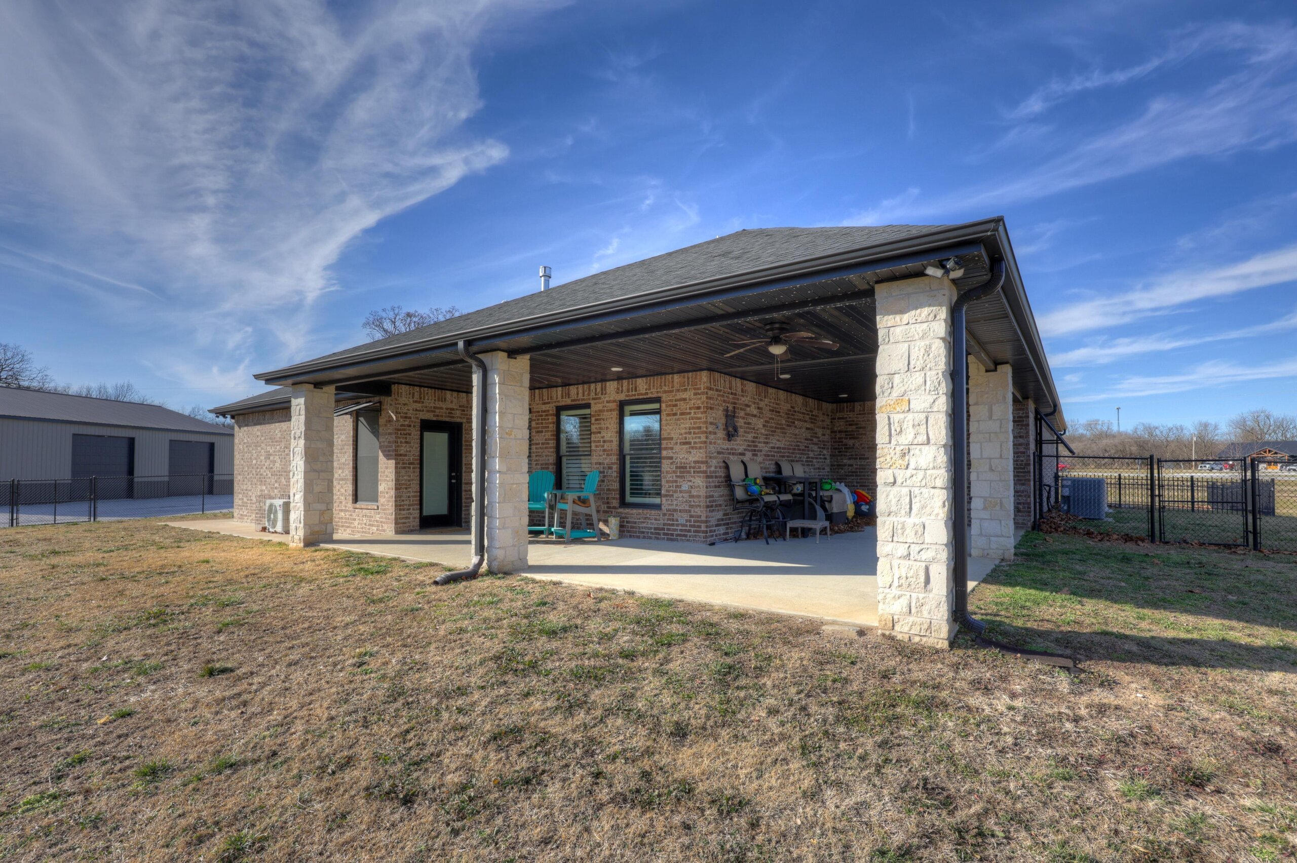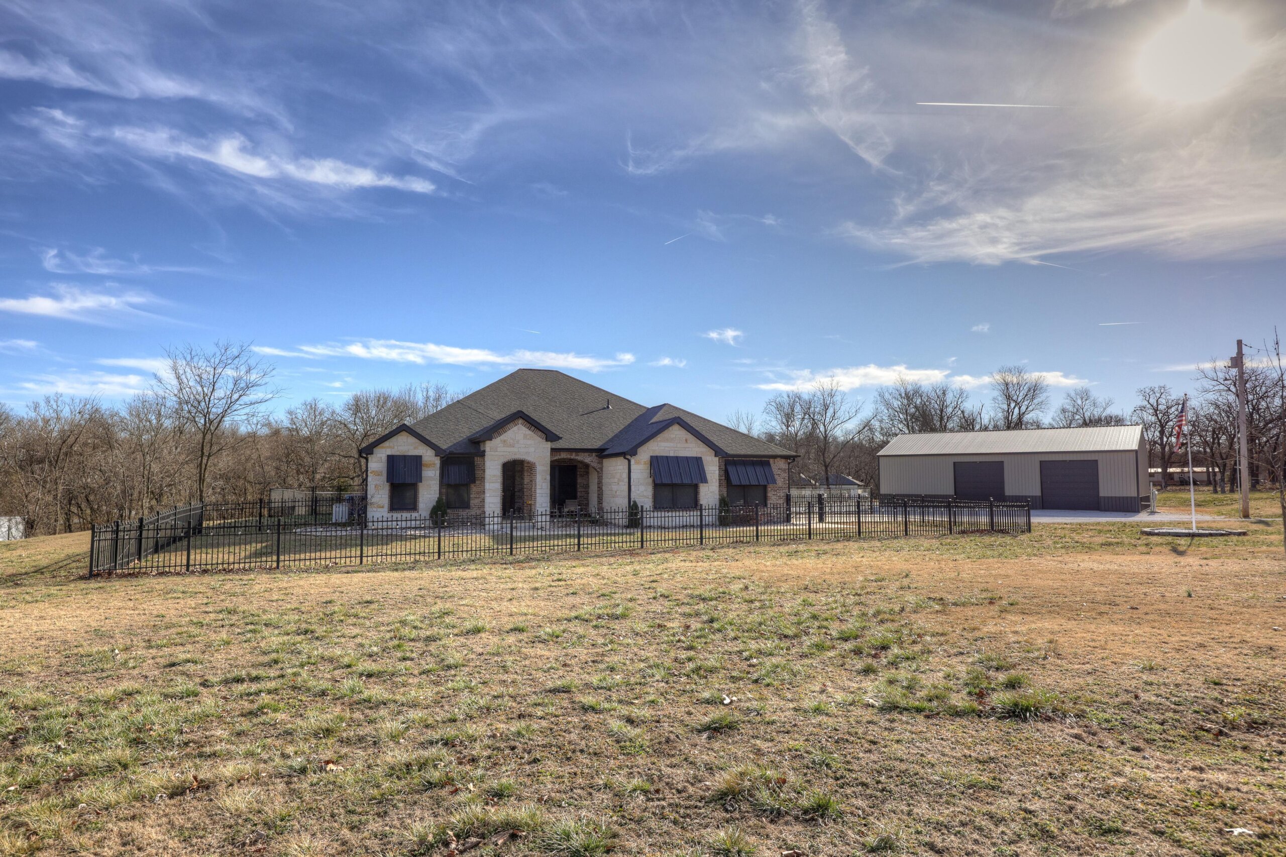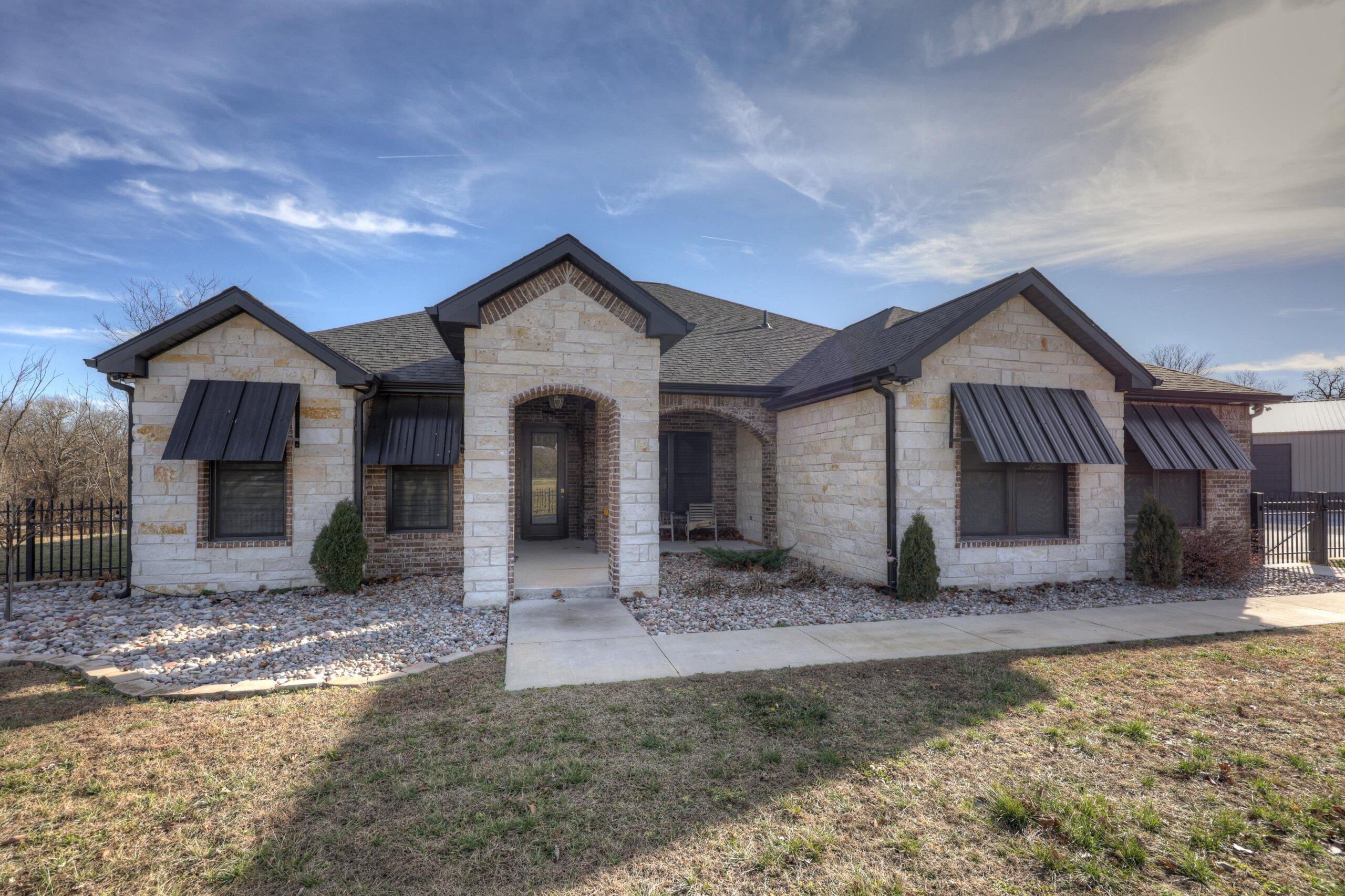 Start your adventure here in this gorgeous, move-in ready home that sits on over three acres. The chef’s dream kitchen has center cooking island, Kitchen Aid appliances, walk-in pantry and roll out drawers in the custom Twin Oaks cabinetry. The living room is open to the kitchen and features a gorgeous stone gas fireplace and built-in cabinetry. The primary suite has over 500 square feet and has a spectacular bathroom with separate tub and shower, double vanities with LED mirrors, massive closet and direct access to the laundry room. Other features of the home include hard surface flooring and granite or quartz countertops throughout, new HVAC, wraparound covered patio and fenced yard. There’s also a 60×40 shop with 3 overhead doors, storage, electricity and large storm shelter. This is truly a rare find!