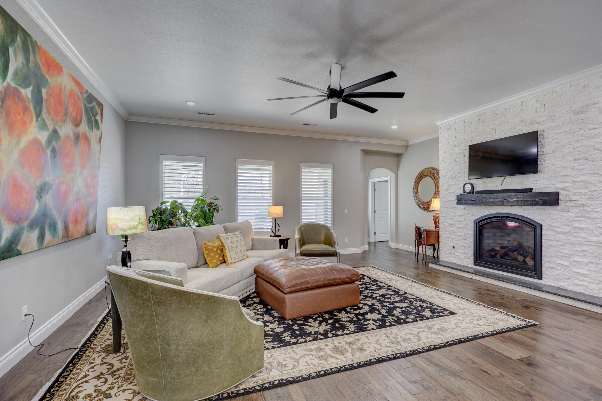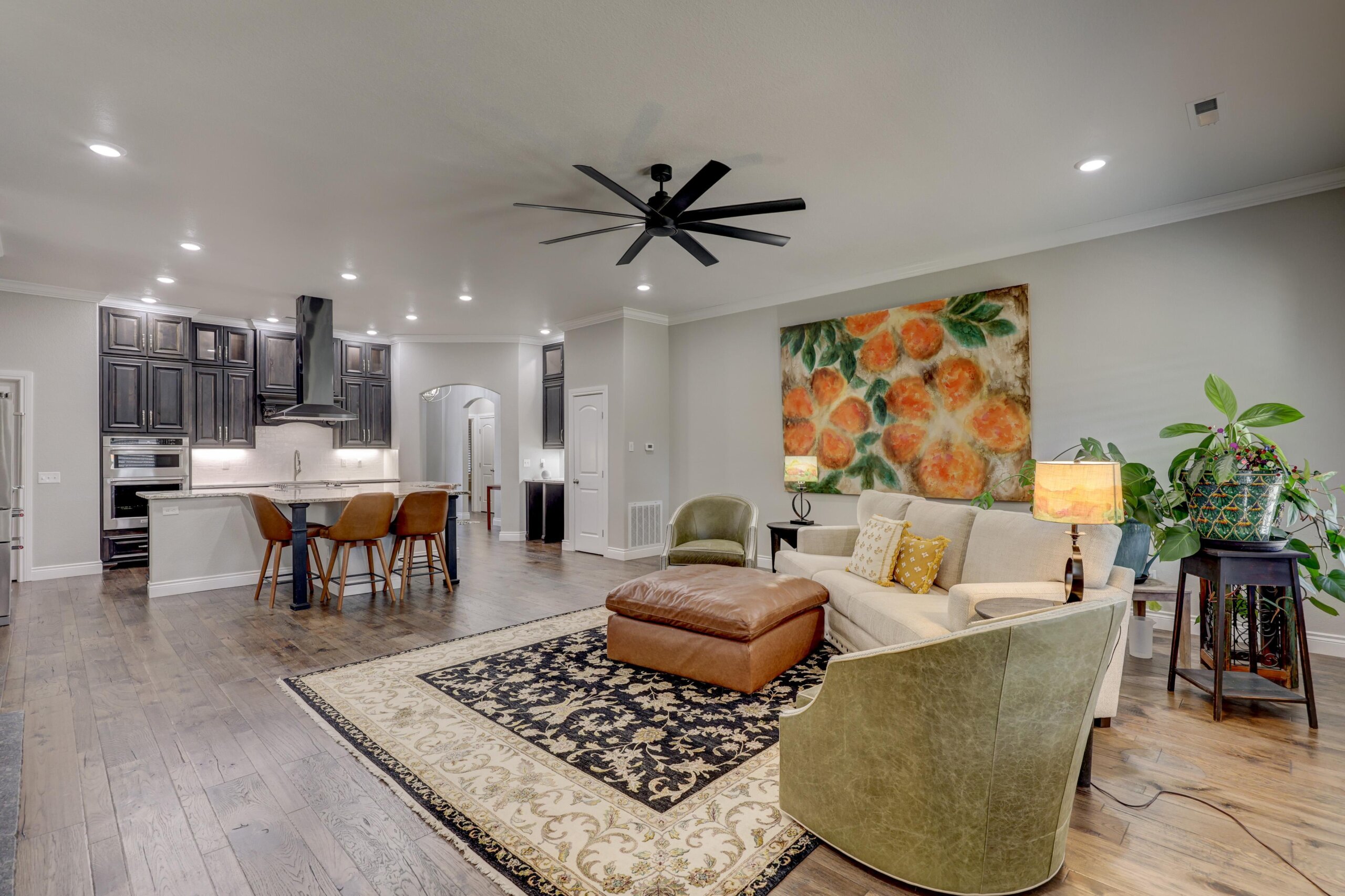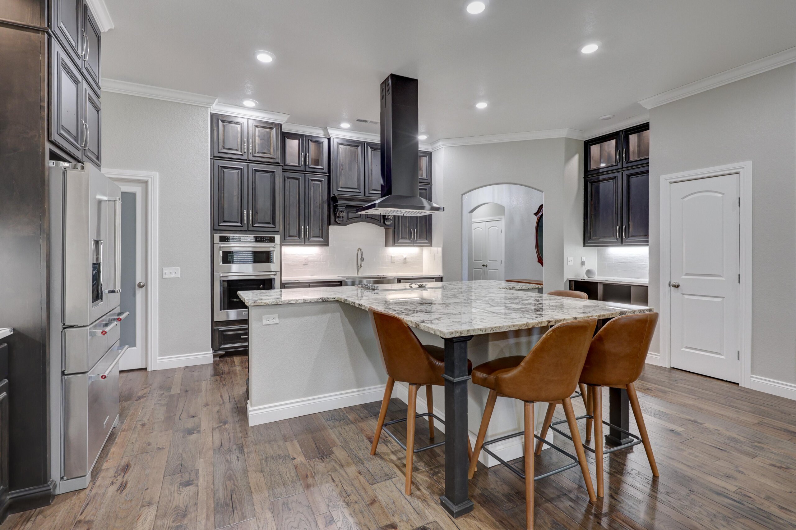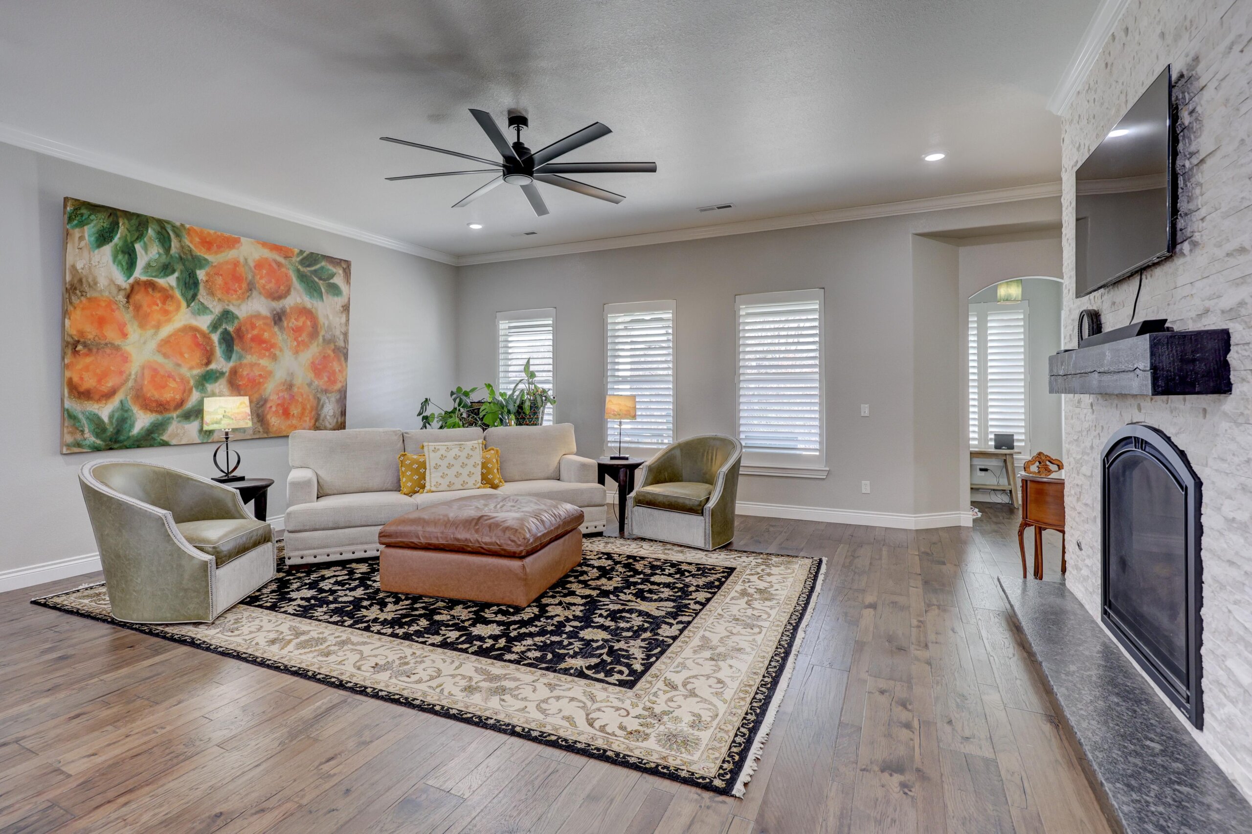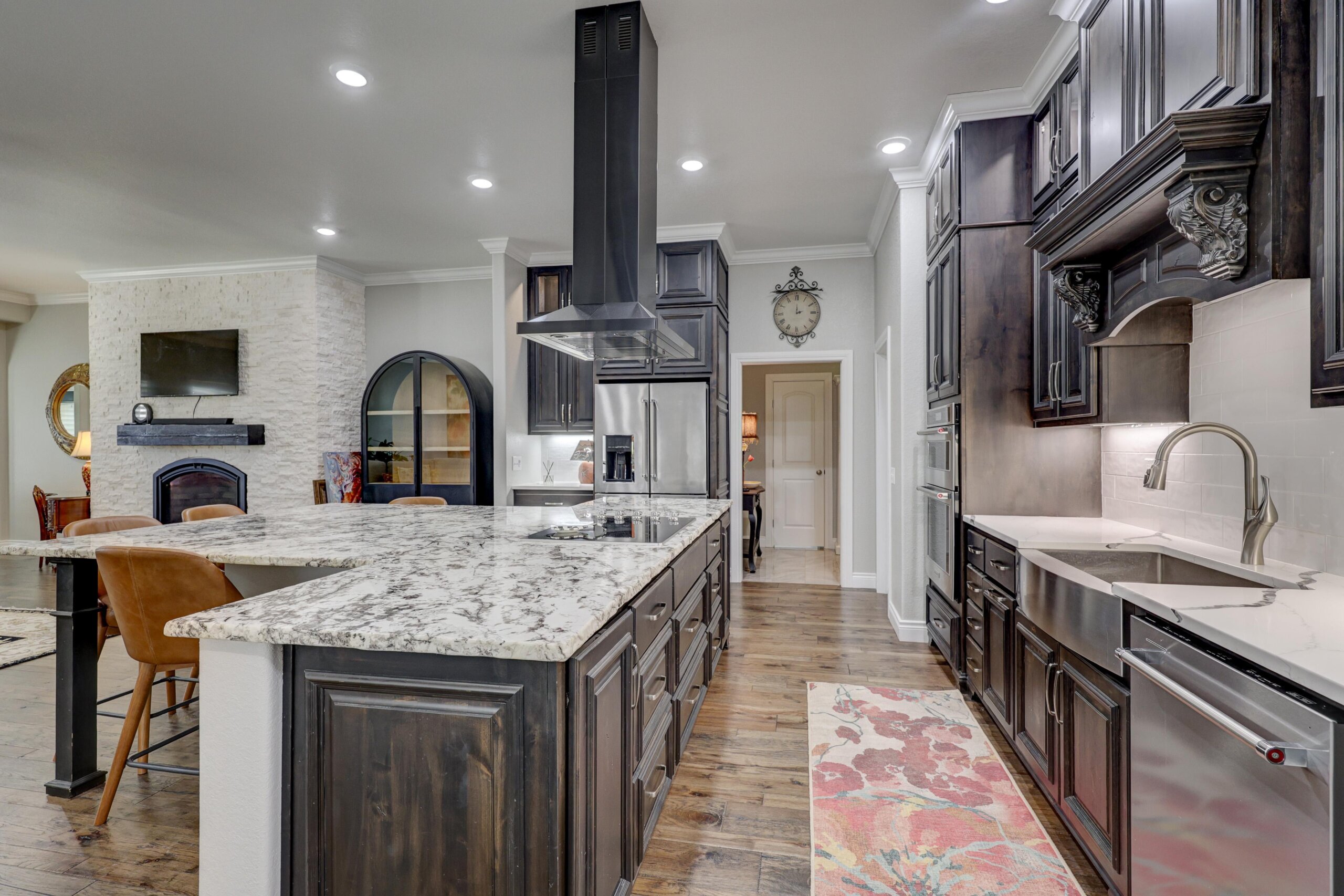 Start your adventure here in this gorgeous, move-in ready home that sits on over three acres. The chef’s dream kitchen has center cooking island, Kitchen Aid appliances, walk-in pantry and roll out drawers in the custom Twin Oaks cabinetry. The living room is open to the kitchen and features a gorgeous stone gas fireplace and built-in cabinetry. The primary suite has over 500 square feet and has a spectacular bathroom with separate tub and shower, double vanities with LED mirrors, massive closet and direct access to the laundry room. Other features of the home include hard surface flooring and granite or quartz countertops throughout, new HVAC, wraparound covered patio and fenced yard. There’s also a 60×40 shop with 3 overhead doors, storage, electricity and large storm shelter. This is truly a rare find!