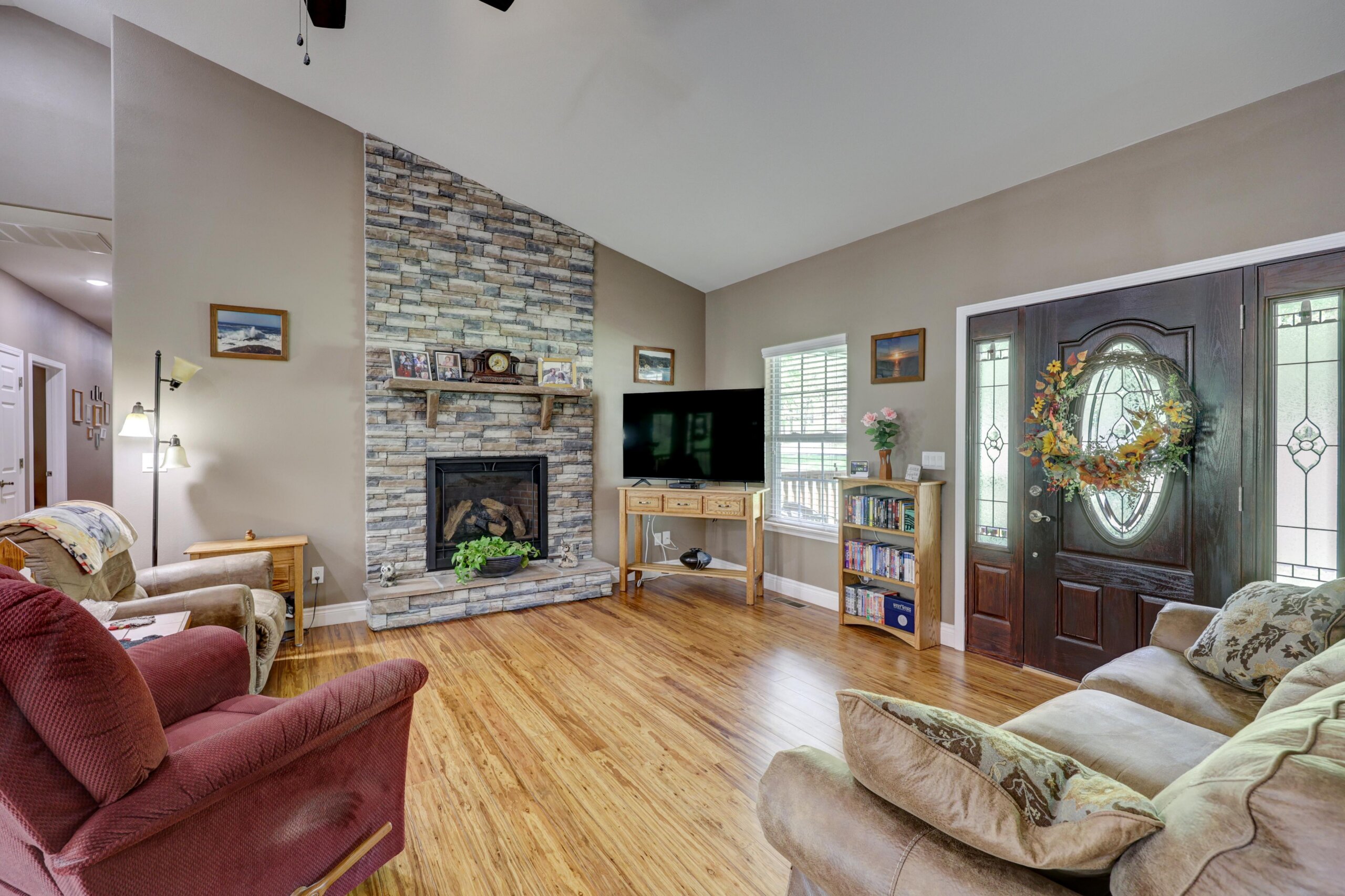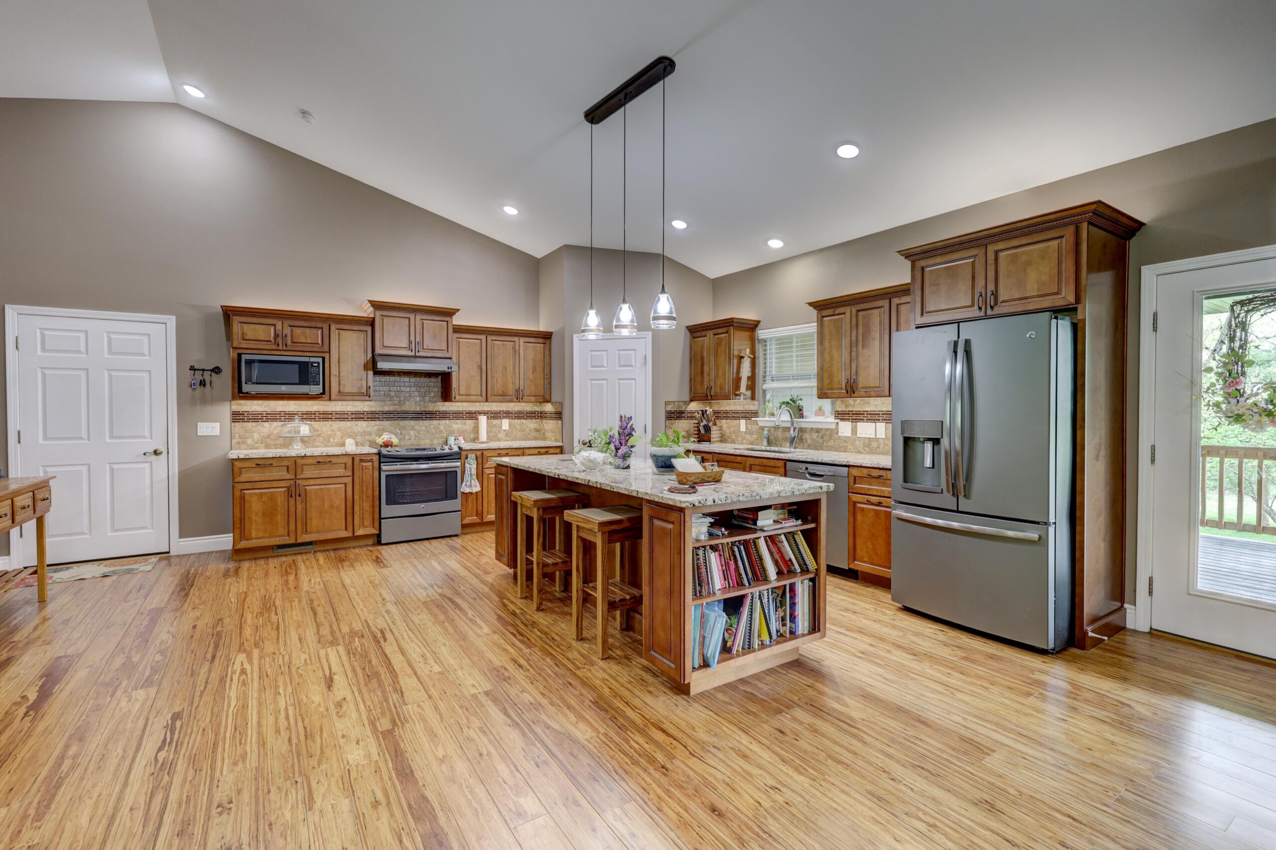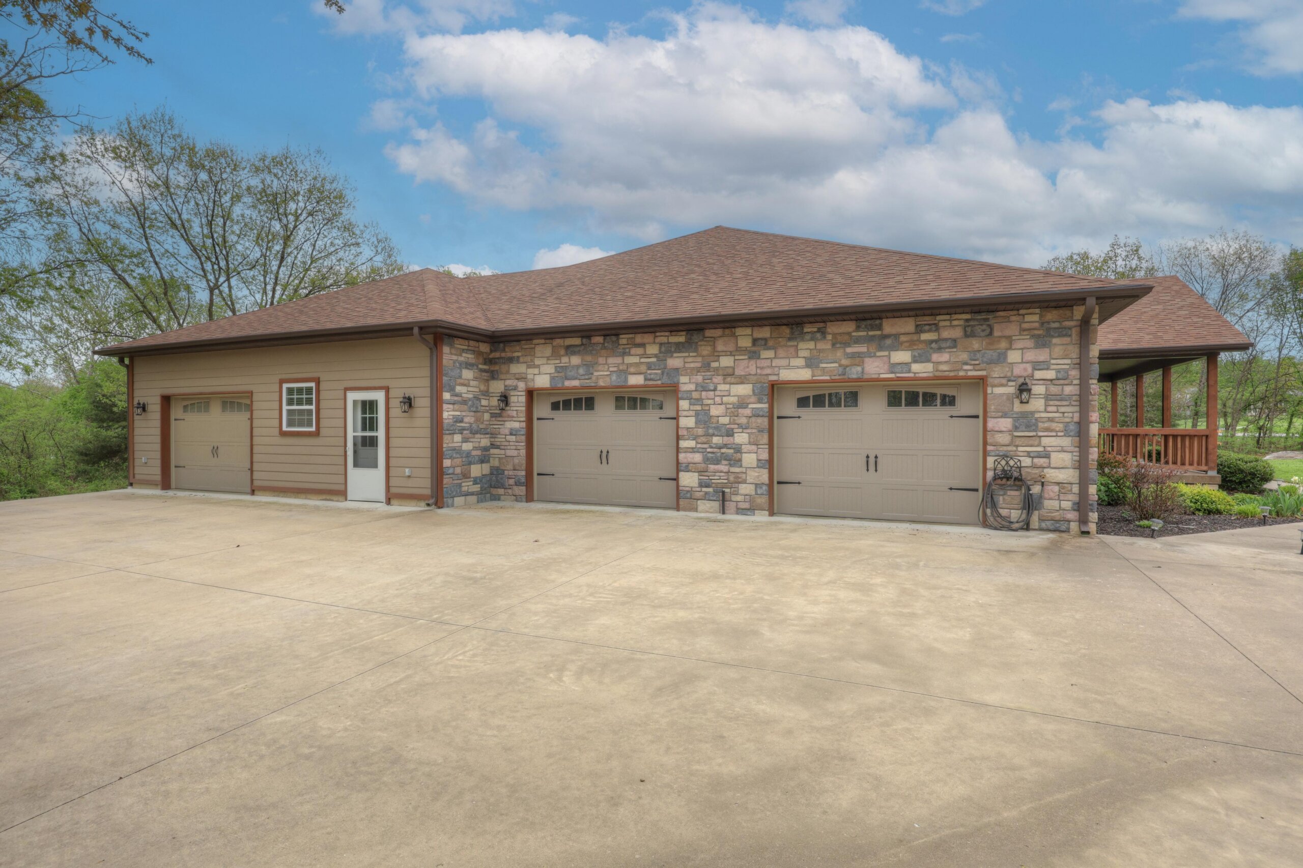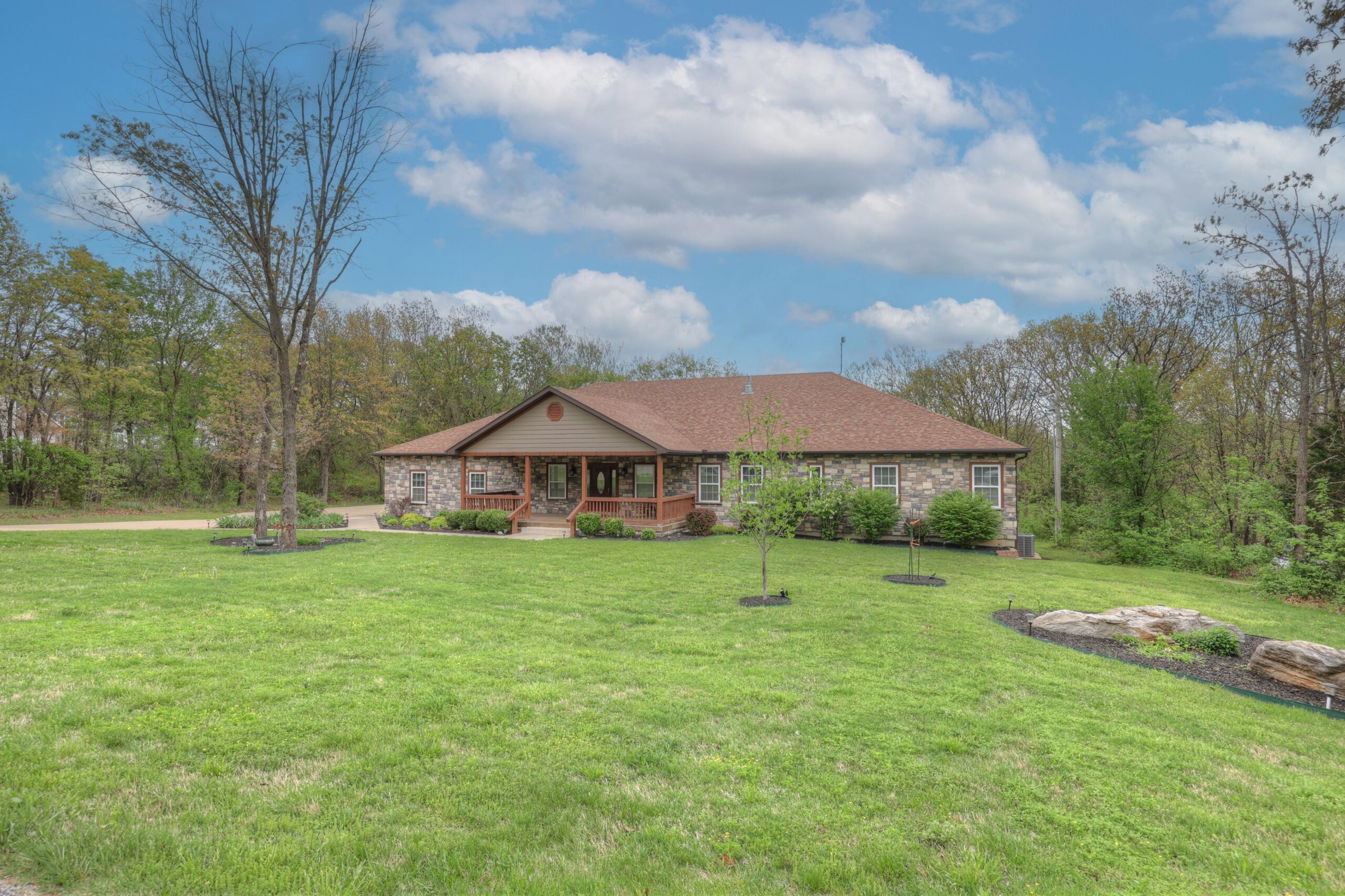 Away from the hustle and bustle of the city you’ll find the finest craftsmanship and thoughtful touches incorporated into every room of this pristine custom home. The fully-applianced gourmet kitchen has walk-in pantry, custom lighting, granite countertops, center island with hidden pop-up outlets, Kitchen Aid mixer station and built-in bookcase and is open to the living room with stone fireplace. The primary suite has double sinks, walk-in shower, garden tub and oversized closet. The 4th bedroom with walk-in closet has deck access and could be used as an additional living area. The full unfinished walkout basement is rough plumbed for an additional full bathroom and has a 12×30 storm shelter with steel door securely situated under the front porch. The covered deck is plumbed with gas line for the grill and has a beautiful view of the woods. Besides the oversized two car garage, there’s a woodworker’s dream: a heated and cooled 1000+ square foot shop with half bath, utility sink and dust collection system complete with overhead door and deck access. Nestled in the woods, this home is ideally located just moments from the city, but with a park-like setting. Other upgrades include polymer modified asphalt shingles, cement siding, two 220V electric panels, extensive cabinetry and built-ins, and tankless water heater.