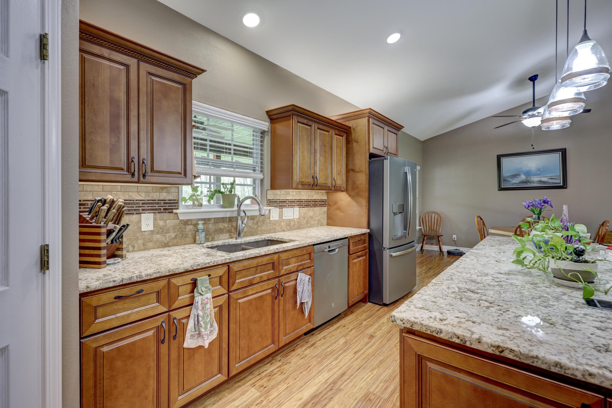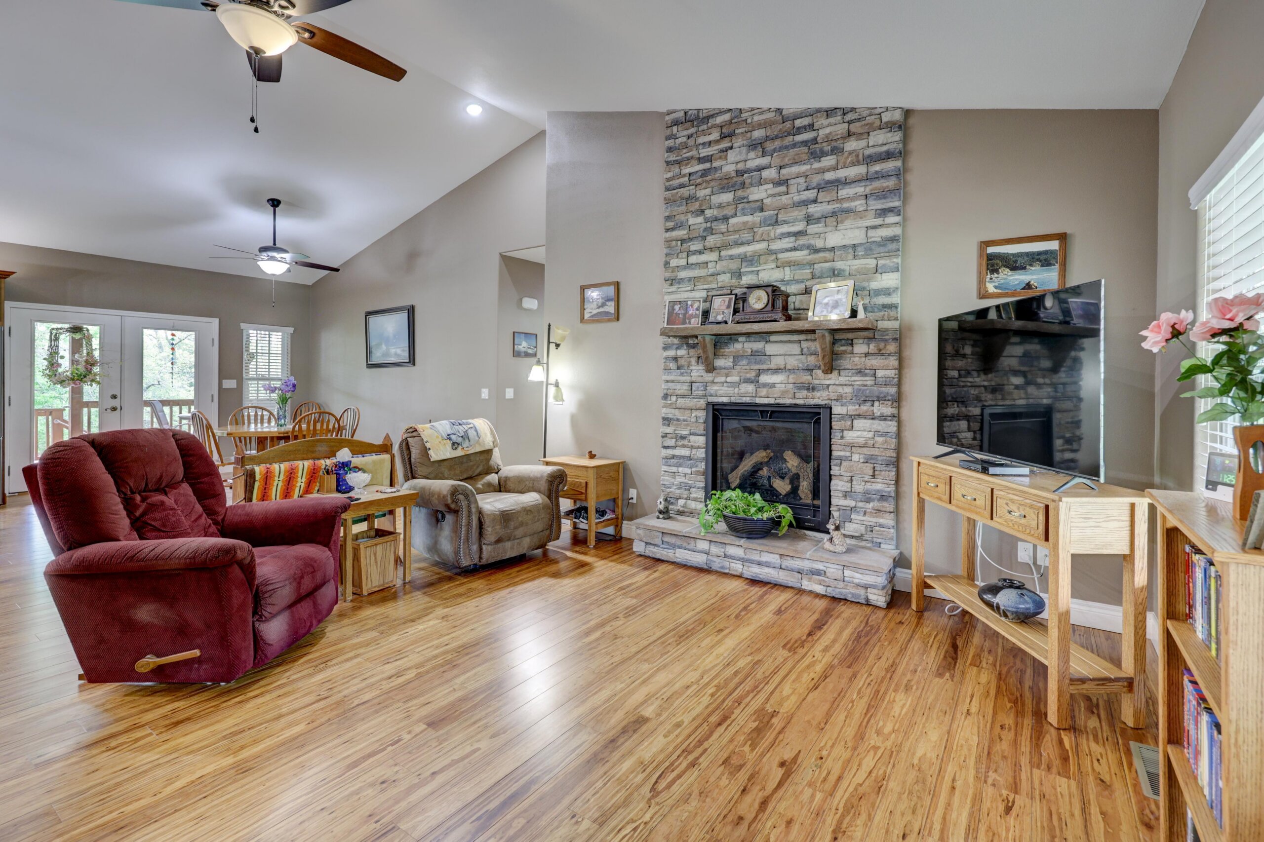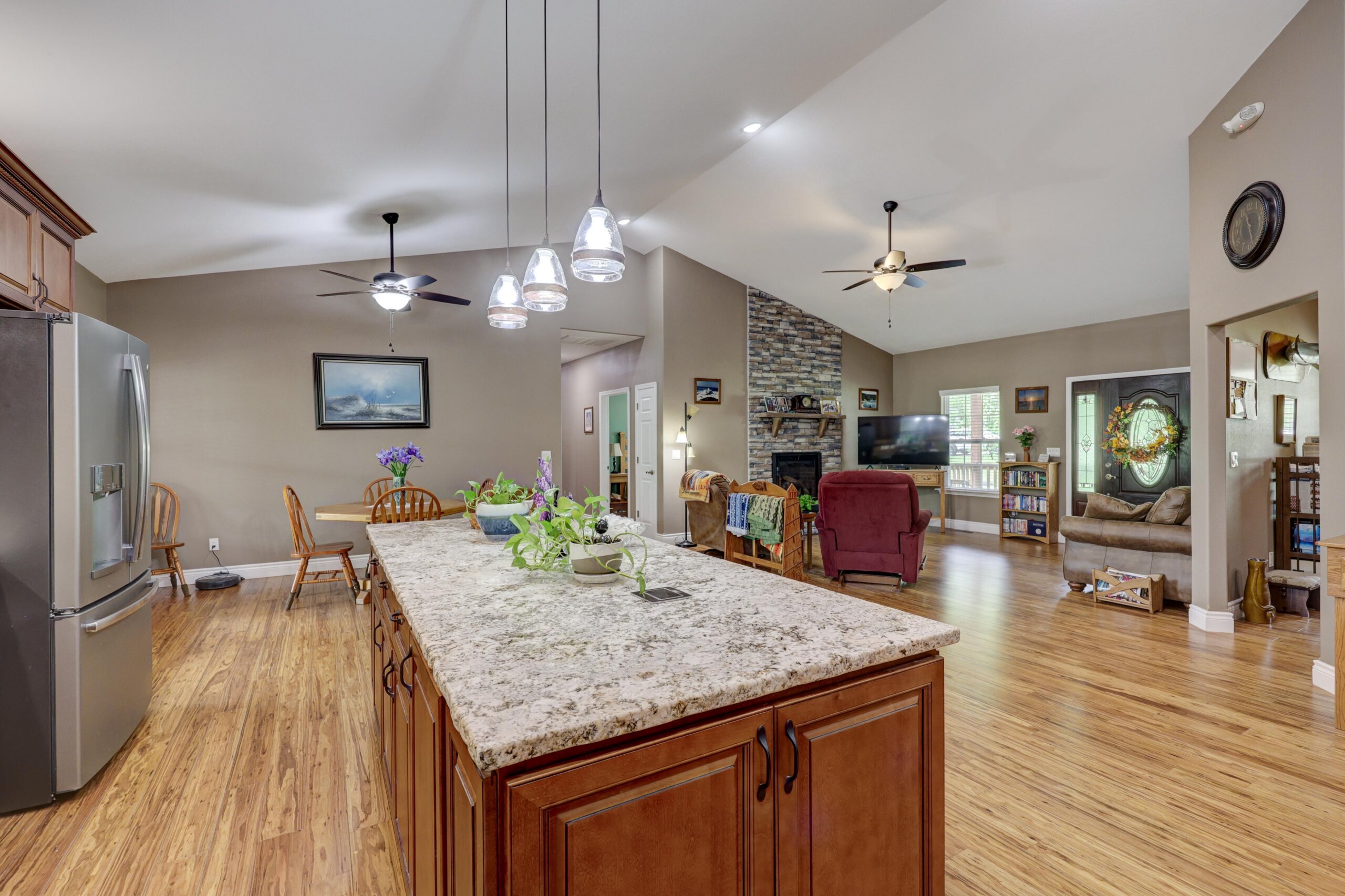 Away from the hustle and bustle of the city you’ll find the finest craftsmanship and thoughtful touches incorporated into every room of this pristine custom home. The fully-applianced gourmet kitchen has walk-in pantry, custom lighting, granite countertops, center island with hidden pop-up outlets, Kitchen Aid mixer station and built-in bookcase and is open to the living room with stone fireplace. The primary suite has double sinks, walk-in shower, garden tub and oversized closet. The 4th bedroom with walk-in closet has deck access and could be used as an additional living area. The full unfinished walkout basement is rough plumbed for an additional full bathroom and has a 12×30 storm shelter with steel door securely situated under the front porch. The covered deck is plumbed with gas line for the grill and has a beautiful view of the woods. Besides the oversized two car garage, there’s a woodworker’s dream: a heated and cooled 1000+ square foot shop with half bath, utility sink and dust collection system complete with overhead door and deck access. Nestled in the woods, this home is ideally located just moments from the city, but with a park-like setting. Other upgrades include polymer modified asphalt shingles, cement siding, two 220V electric panels, extensive cabinetry and built-ins, and tankless water heater.