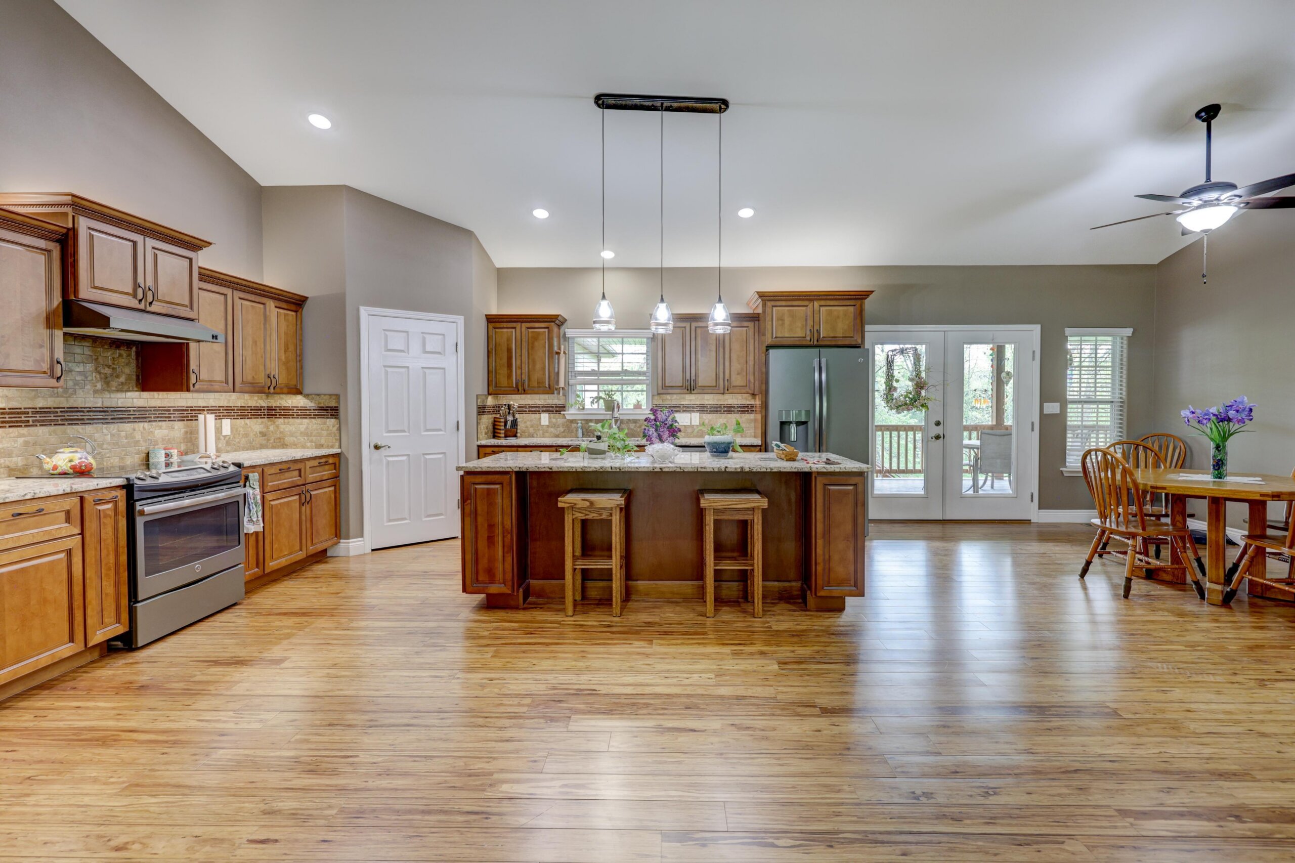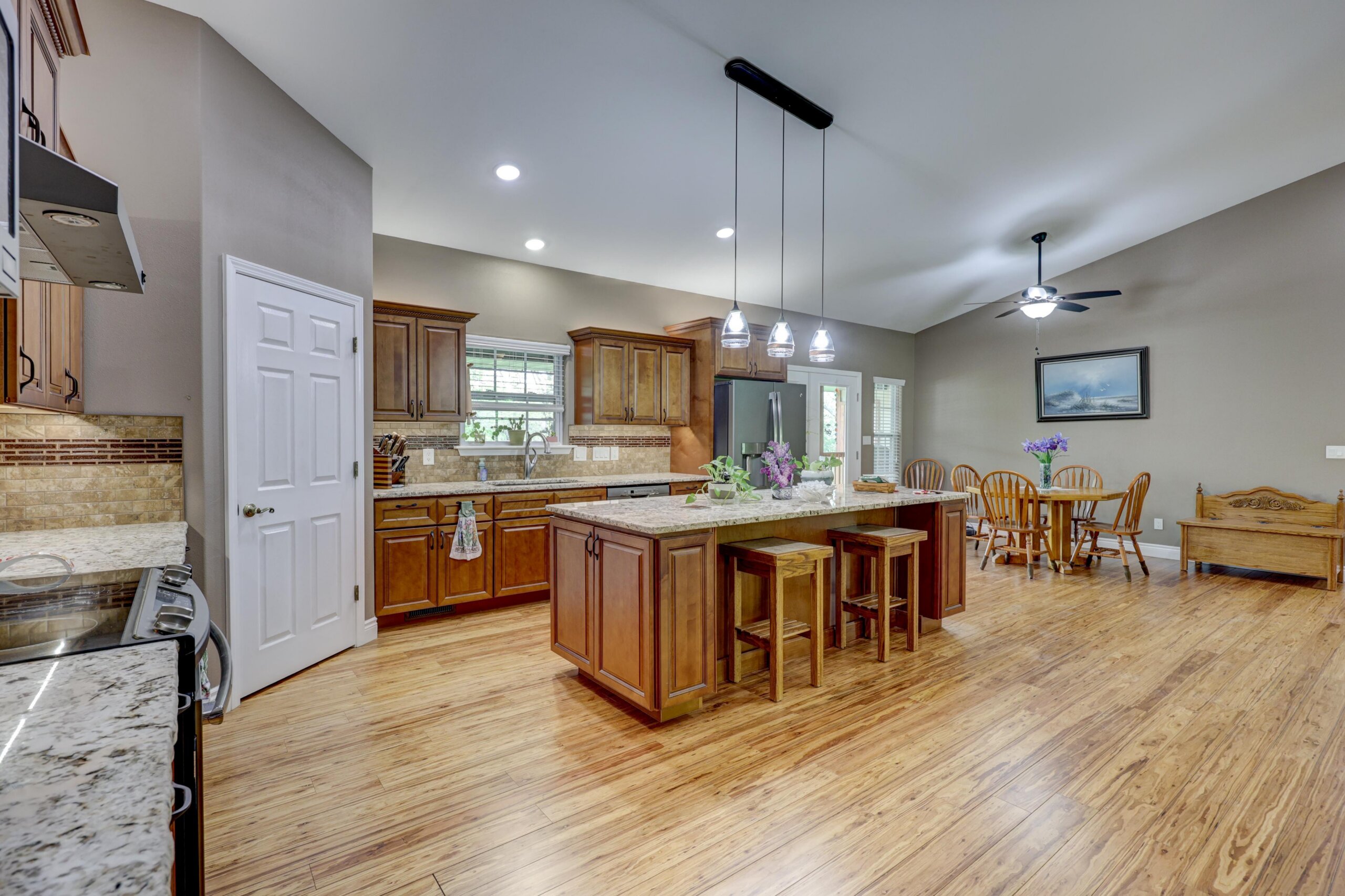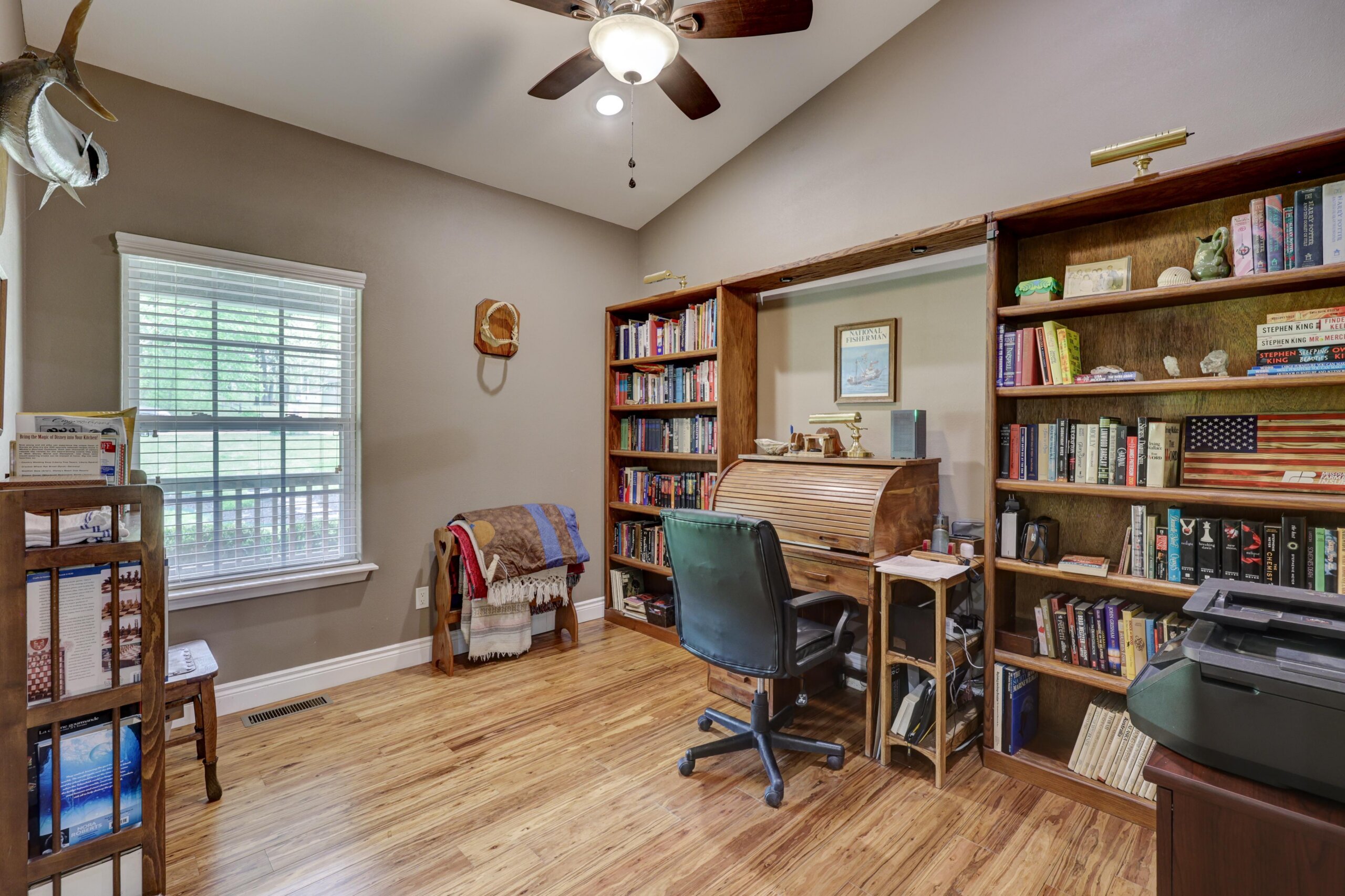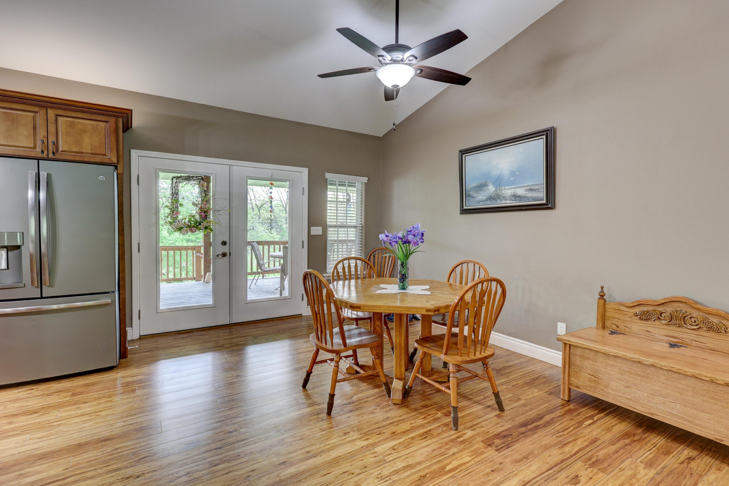 Away from the hustle and bustle of the city you’ll find the finest craftsmanship and thoughtful touches incorporated into every room of this pristine custom home. The fully-applianced gourmet kitchen has walk-in pantry, custom lighting, granite countertops, center island with hidden pop-up outlets, Kitchen Aid mixer station and built-in bookcase and is open to the living room with stone fireplace. The primary suite has double sinks, walk-in shower, garden tub and oversized closet. The 4th bedroom with walk-in closet has deck access and could be used as an additional living area. The full unfinished walkout basement is rough plumbed for an additional full bathroom and has a 12×30 storm shelter with steel door securely situated under the front porch. The covered deck is plumbed with gas line for the grill and has a beautiful view of the woods. Besides the oversized two car garage, there’s a woodworker’s dream: a heated and cooled 1000+ square foot shop with half bath, utility sink and dust collection system complete with overhead door and deck access. Nestled in the woods, this home is ideally located just moments from the city, but with a park-like setting. Other upgrades include polymer modified asphalt shingles, cement siding, two 220V electric panels, extensive cabinetry and built-ins, and tankless water heater.